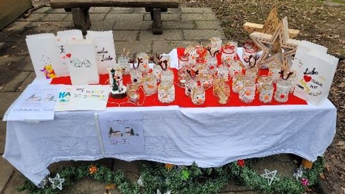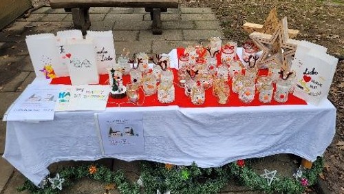 In unserem Kindergarten fand in diesem Jahr ein besonders stimmungsvoller Weihnachtsmarkt statt, der Kinder, Eltern und Gäste begeistert hat. Mit viel Liebe und Kreativität hatten die Gruppen ihre eigenen Stände vorbereitet: Die Tigergruppe bot wunderschöne, selbst gestaltete Teelichter an, die Bärengruppe präsentierte große und kleine bemalte Taschen und die Wichtelgruppe verwöhnte die Besucher mit selbstgebackenen Plätzchen.